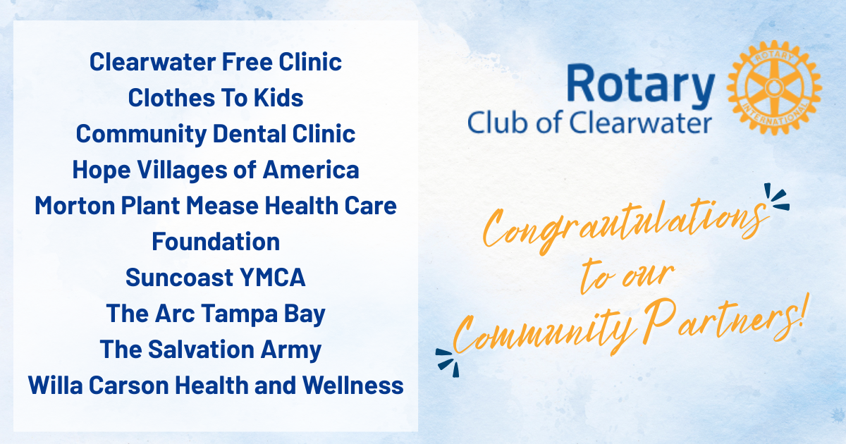 Clearwater Rotary meets in-person at the Belleair Country Club each Wednesday at noon.